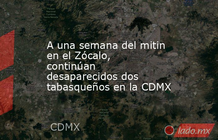 – A una semana de haberse realizado el mitin por los siete años de la llamada Cuarta Transformación en el Zócalo capitalino, dos hombres originarios de Tabasco continúan desaparecidos tras acudir al evento del pasado 6 de diciembre, informó la Fiscalía General de Justicia de la Ciudad de México (FGJCDMX).