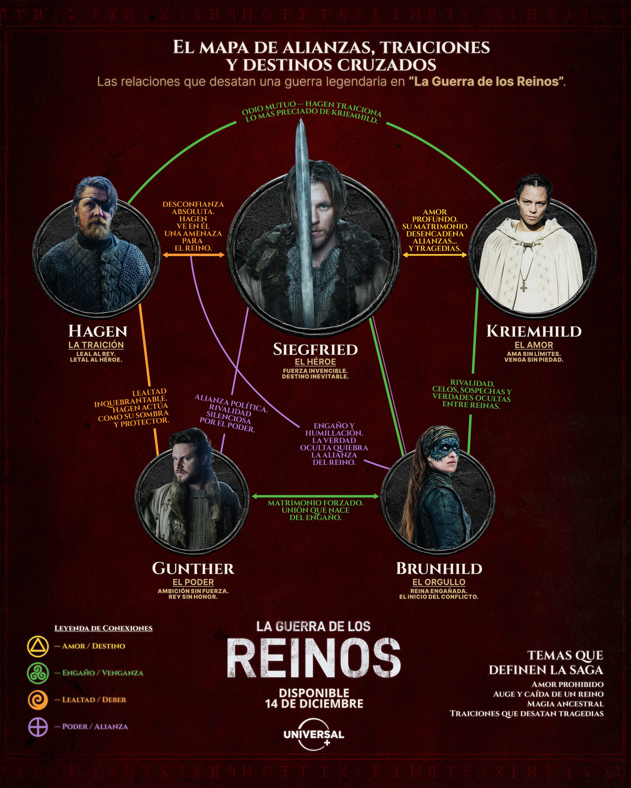 Esta nueva apuesta para redefinir la fantasía llegará a México a partir de este domingo 14 de diciembre, a través de la plataforma de streaming Universal+, desde donde promete transportar al espectador a un universo de reinos enfrentados, magia ancestral y pasiones prohibidas que decidirán el destino de una civilización al borde del colapso.