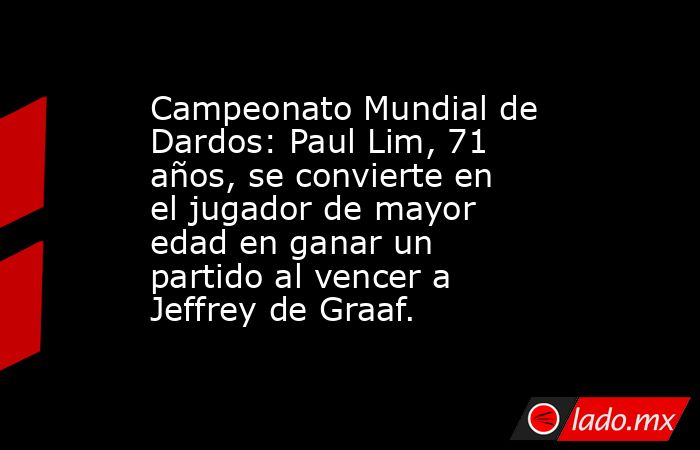 Paul Lim se convirtió en el jugador de mayor edad en ganar un torneo en el Campeonato Mundial del PDC cuando el jugador de 71 años obtuvo una sorprendente victoria sobre Jeffrey de Graaf.