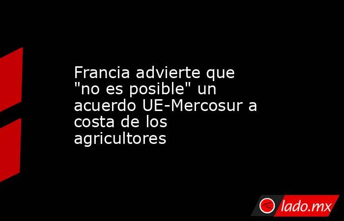París, 14 dic (EFE).- Francia advirtió este domingo que "no es posible" un acuerdo entre la Unión Europea y Mercosur que ponga en riesgo a los agricultores franceses, en vísperas de la cumbre de jefes de Estado y de Gobierno que debería aprobar en Bruselas el pacto de libre comercio entre ambas regiones.