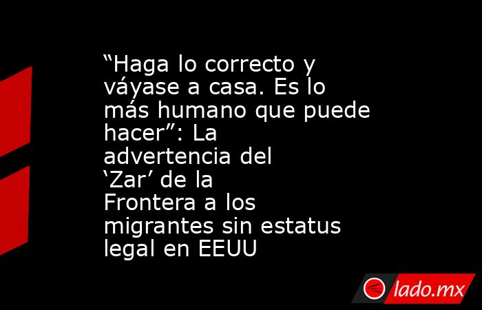 “Haga lo correcto y váyase a casa. Es lo más humano que puede hacer”, declaró el funcionario, quien es identificado en medios estadounidenses como el “zar de la frontera”.