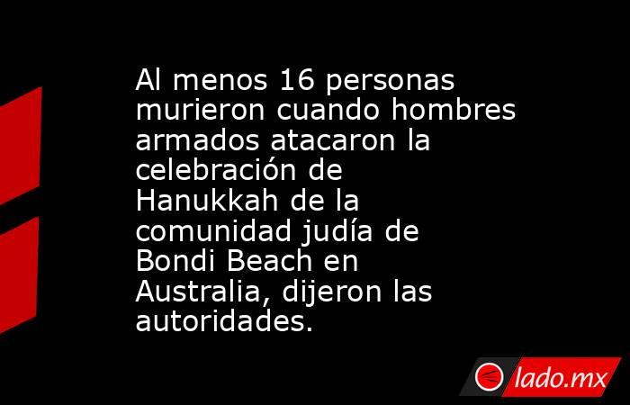 Al menos 16 personas, incluido un niño de 12 años, murieron el domingo en un ataque a una reunión judía en una famosa playa australiana, dijeron funcionarios del gobierno y la policía. 40 personas, entre ellas dos policías y tres niños, resultaron heridas y trasladadas al hospital.