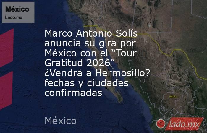 Respecto a una posible presentación en Hermosillo, Sonora, no hay ninguna fecha confirmada hasta el momento. El nombre de la ciudad no aparece en el calendario oficial del “Tour Gratitud 2026″.