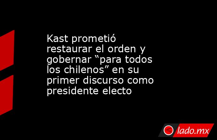 “Sin paz no hay democracia, y sin democracia no hay libertad. Chile volverá a ser libre”, expresó Kast en su discurso.