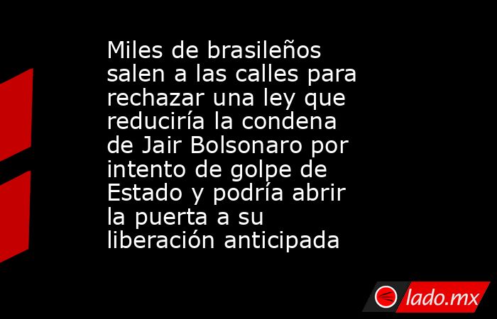 BRASIL.- Decenas de miles de personas se manifestaron en Brasil contra un proyecto de ley que reduciría drásticamente la condena del expresidente Jair Bolsonaro, sentenciado a más de 27 años de prisión por liderar un intento de golpe de Estado, una iniciativa que avanza en el Congreso y ha generado una fuerte reacción social.