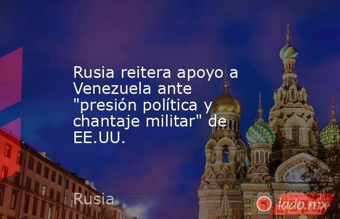Moscú, 15 dic (EFE). - Rusia apoya a Venezuela ante "la presión política y el chantaje militar" de Estados Unidos, afirmó hoy el director del Departamento de América Latina del Ministerio de Exteriores rusos, Alexandr Schetinin, durante un foro juvenil ruso-venezolano celebrado en Moscú.