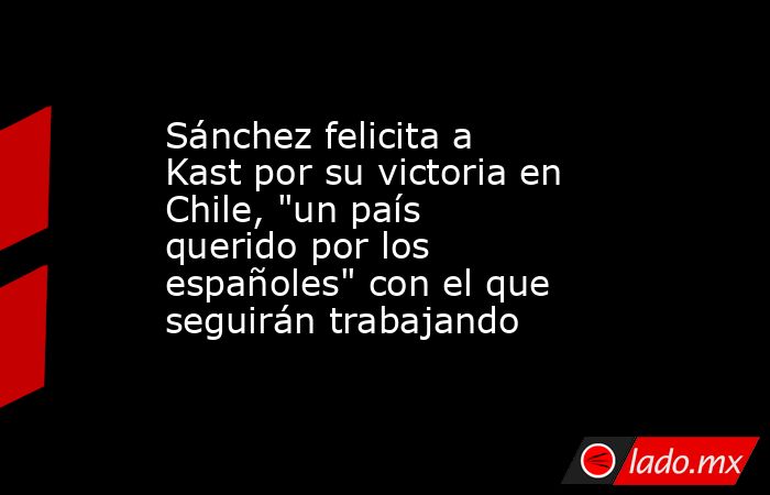 El presidente del Gobierno, Pedro Sánchez, ha felicitado al presidente electo de Chile, José Antonio Kast, por su victoria en las elecciones presidenciales chilenas, donde se ha impuesto este domingo con el 58,61 por ciento de votos, por delante del 41,39 por ciento de la exministra Jeannette Jara.