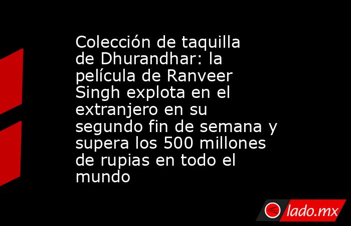Dhurandhar tuvo un excelente segundo fin de semana en la taquilla extranjera, recaudando alrededor de 5,50 millones de dólares (49 millones de rupias). La estrella de Ranveer Singh ha registrado un fenomenal aumento del 68 por ciento en los negocios desde su primer fin de semana. Esto eleva su total bruto a alrededor de 11,95 millones de dólares (108 millones de rupias). Un total de Rs. Recaudación bruta de taquilla de 400 millones de rupias de IndiaLa recaudación mundial bruta de la película fue de Rs. 508 millones de rupias.
