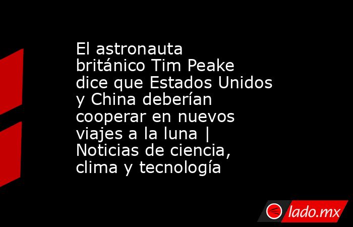 El astronauta británico Tim Peake ha pedido a Estados Unidos y China que dejen de hablar de una carrera espacial y regresen a la Luna “en un espíritu de cooperación”.