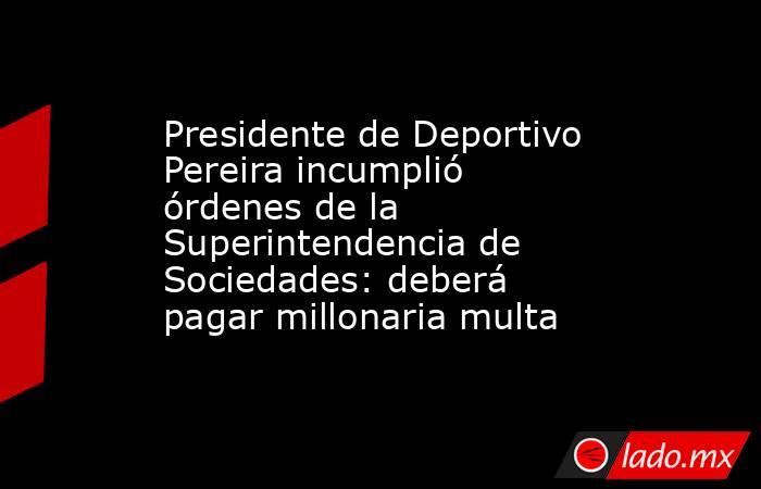 La Superintendencia de Sociedades impuso una multa de $100.000.000 al representante legal del Deportivo Pereira F.C. S.A., Álvaro de Jesús López Bedoya, por incumplir órdenes de la entidad relacionadas con la gestión contable y la participación en decisiones sobre su propia administración.
