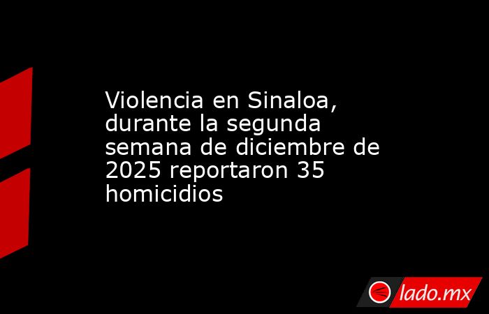 Sinaloa registró 35 homicidios dolosos en la segunda semana de diciembre de 2025 (del 8 al 14 de diciembre), según datos preliminares de la Secretaría de Seguridad y Protección Ciudadana (SSPC) de México. Esta cifra contribuye a un total nacional de 364 asesinatos en esa semana, con un incremento del 10.64% respecto a la anterior. Aunque Sinaloa no encabezó la lista estatal (Guanajuato reportó 34), mantiene niveles elevados de violencia derivados principalmente de la pugna interna en el Cártel de Sinaloa, iniciada en septiembre de 2024.