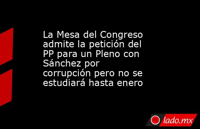 La Mesa del Congreso ha admitido a trámite la solicitud de comparecencia del PP para que el presidente del Gobierno, Pedro Sánchez, hable de corrupción en el Pleno, si bien la Junta de Portavoces, que es la encargada de debatirlo y poner fecha en su caso, no se convocará previsiblemente hasta finales de enero.