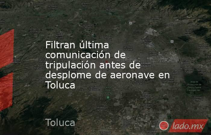 – A pocas horas del desplome de una aeronave ejecutiva en las inmediaciones del Aeropuerto Internacional de Toluca (AIT), se difundió en redes sociales el audio de la última comunicación entre la tripulación y la Torre de Control, en la que se escuchan los momentos previos al accidente.