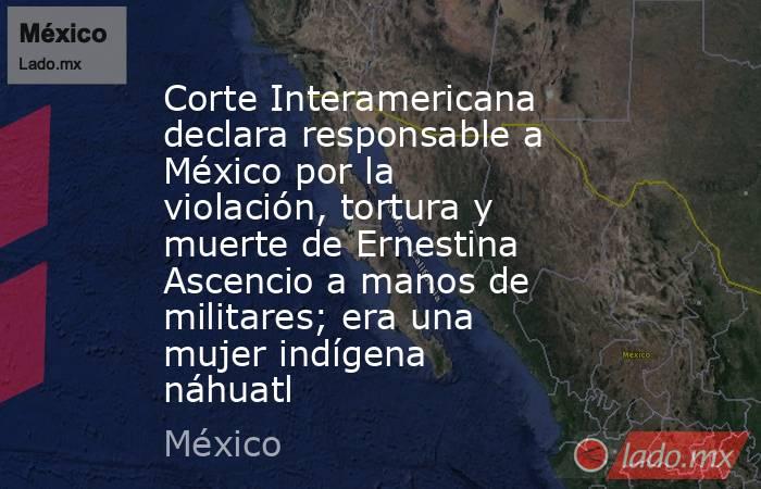 La Corte Interamericana de Derechos Humanos (CorteIDH) condenó al Estado mexicano por su responsabilidad internacional en la violación sexual, tortura y muerte de Ernestina Ascencio Rosario, mujer indígena náhuatl monolingüe de 73 años, ocurrida en 2007 en la Sierra de Zongolica, Veracruz.