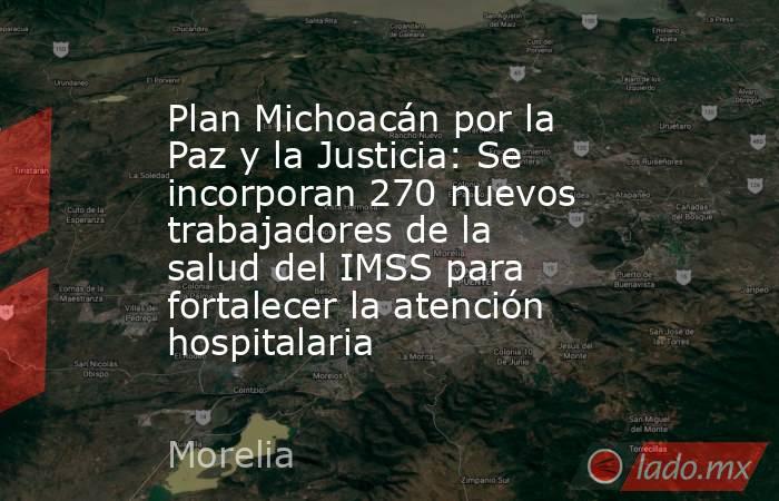 A través de un enlace desde Palacio Nacional a Morelia, Michoacán, la Presidenta de México, Claudia Sheinbaum Pardo, encabezó la entrega de basificaciones a 270 nuevos trabajadores de la salud: médicas, médicos, enfermeras, enfermeros y paramédicos, que se incorporan a hospitales rurales y de zona del Instituto Mexicano del Seguro Social (IMSS) como parte del Plan Michoacán por la Paz y la Justicia.