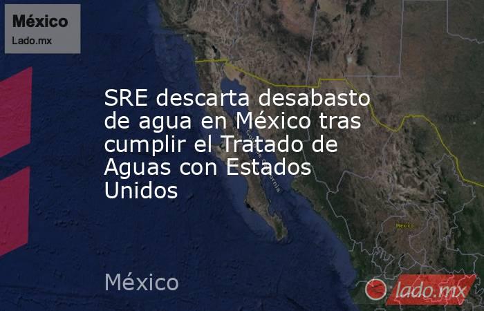 La Secretaría de Relaciones Exteriores (SRE) descartó que el cumplimiento del Tratado de Aguas con Estados Unidos, pueda derivar en afectaciones del suministro y provoque desabasto de agua en México.