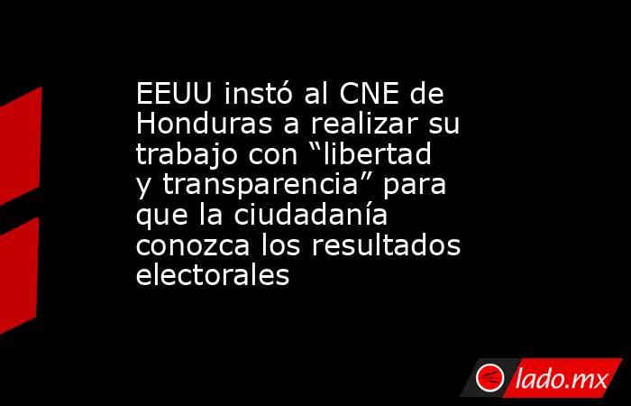 La Embajada de Estados Unidos en Honduras instó este martes al Consejo Nacional Electoral (CNE) a “realizar su trabajo con libertad y transparencia” para que la ciudadanía conozca los resultados de las elecciones generales celebradas el pasado 30 de noviembre.
