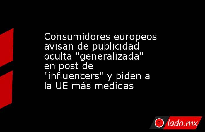 La Organización Europea de Consumidores (BEUC) ha alertado de la existencia "generalizada" de publicidad oculta en las publicaciones de los "influencers" en redes sociales que "apelan a las emociones para influir en las preferencias y el comportamiento" de los consumidores, especialmente entre los más jóvenes, y ha pedido más medidas a la Unión Europea (UE).