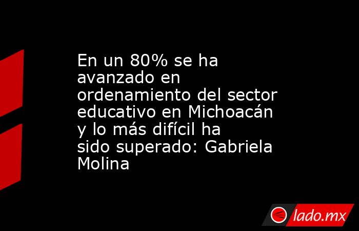 En un 80 por ciento se ha avanzado en el reordenamiento del sector educativo en Michoacán en este sexenio estatal, cuya meta ha sido trabajada bajo tres objetivos: recuperar la rectoría de la educación, lograr ciclos completos de clases en educación básica, y la disminución del rezago educativo.