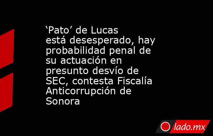 The post ‘Pato’ de Lucas está desesperado, hay probabilidad penal de su actuación en presunto desvío de SEC, contesta Fiscalía Anticorrupción de Sonora appeared first on Proyecto Puente.