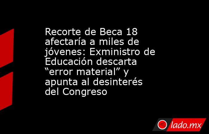 Durante una entrevista difundida en Canal N, el exministro de Educación Ricardo Cuenca rechazó que la exclusión del financiamiento para nuevas becas responda a un “error material”, como argumentó el Ejecutivo. Para Cuenca, la explicación carece de sustento, ya que tanto el Ministerio de Economía y Finanzas como el Congreso disponen de mecanismos de revisión para evitar este tipo de omisiones. El exministro atribuyó la situación a la falta de interés político y remarcó que el impacto más severo recaerá sobre los jóvenes con menos recursos.