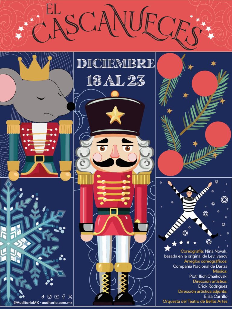 La Compañía Nacional de Danza (CND) y la Orquesta del Teatro de Bellas Artes (OTBA) se unen nuevamente para ofrecer esta joya del ballet clásico, que marca oficialmente el inicio de la temporada decembrina en la capital. Con 240 artistas en escena, escenarios deslumbrantes y vestuarios de ensueño, esta versión se ha consolidado como el espectáculo emblemático de la Navidad capitalina.