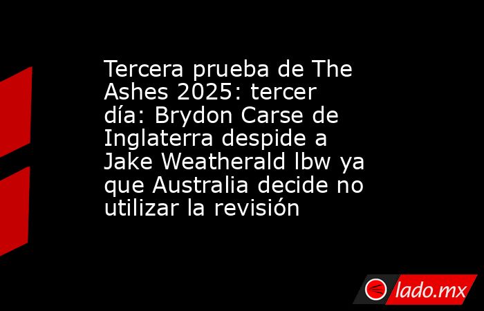 Brydon Carse, de Inglaterra, despidió a Jake Weatherald lbw por uno, pero las repeticiones mostraron que la decisión debería haber sido anulada ya que Australia parecía arrepentida por decidir no revisar, dejando al equipo local 8-1 abajo, con una ventaja de 93, en el tercer día de la tercera Prueba de Cenizas en Adelaida.