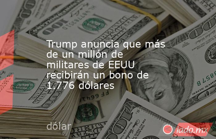 .- El presidente de EE.UU., Donald Trump, anunció este miércoles en un discurso televisado a la nación que otorgará a 1.450.000 miembros de las Fuerzas Armadas un “bono especial”, que llamó “dividendo del guerrero” por valor de 1.776 dólares, cifra simbólica que hace referencia al año de la fundación del país.