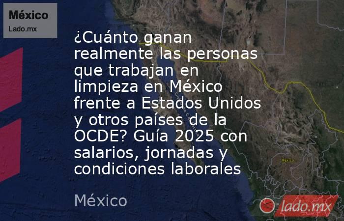 Las personas que trabajan en limpieza sostienen oficinas, hospitales, escuelas, hoteles y espacios públicos, pero sus salarios y condiciones laborales varían ampliamente entre México y otros países de la OCDE, de acuerdo con datos oficiales y estudios laborales recientes