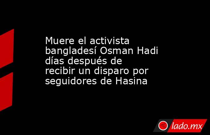 El activista bangladesí y candidato electoral Sharif Osman Hadi ha muerto este jueves en Singapur, donde estaba siendo tratado tras sufrir un tiroteo el pasado viernes, según han anunciado el primer ministro interino de Bangladesh, el Nobel de la Paz Mohamed Yunus, que ha prometido "el máximo castigo" para todos los involucrados. La organización que encabezaba Hadi, Inqilab Mancha, también ha confirmado su muerte.