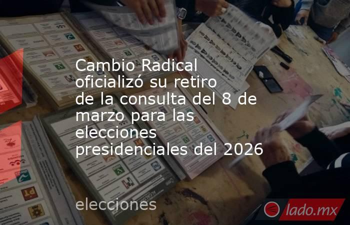 El partido Cambio Radical formalizó su decisión de no participar en la consulta popular e interpartidista prevista para el próximo 8 de marzo de 2026, mecanismo diseñado para definir candidaturas o adoptar decisiones internas de cara a las elecciones presidenciales.