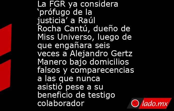 CIUDAD DE MÉXICO.- Raúl Rocha Cantú, empresario originario de Monterrey y copropietario de Miss Universo, pasó de ser testigo colaborador de la Fiscalía General de la República (FGR) a convertirse en prófugo de la justicia.