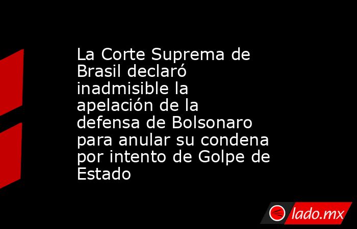 Un juez del Supremo Tribunal Federal de Brasil rechazó el último recurso presentado por la defensa del expresidente Jair Bolsonaro para anular su condena de 27 años de prisión por intento de golpe de Estado. La resolución fue adoptada por el magistrado Alexandre de Moraes, quien declaró inadmisible la apelación presentada por los abogados del exgobernante. El juez consideró que, conforme a las normas del tribunal, este recurso solo es válido si al menos dos de los cinco magistrados votan en contra de la condena, circunstancia que no se dio en este caso, ya que únicamente uno se pronunció a favor de la absolución.