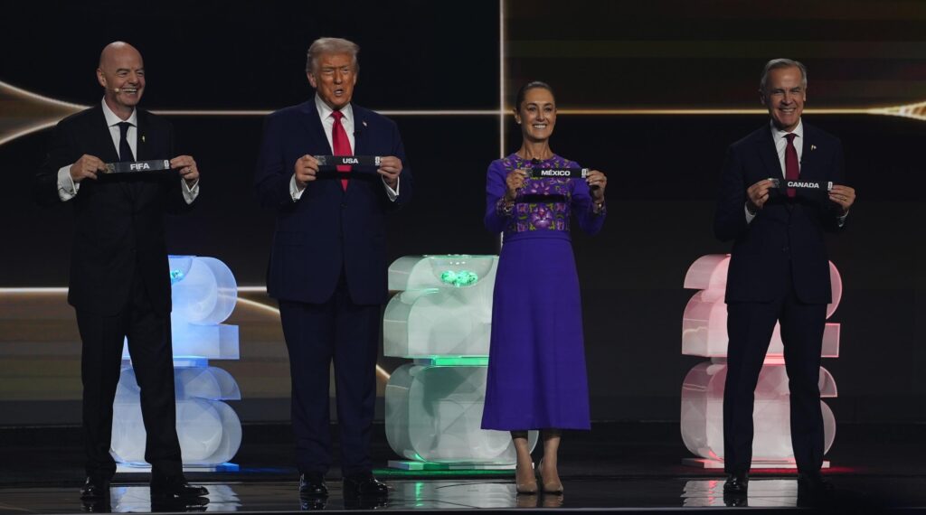 En el sorteo estuvieron presentes los mandatarios de los tres países anfitriones de la justa mundialista: el presidente de Estados Unidos, Donald Trump, y el primer ministro de Canadá, Mark Carney.