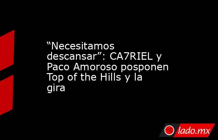A través de un comunicado de prensa en sus redes sociales el dúo argentino CA7RIEL y Paco Amoroso han anunciado que “necesitamos descansar”, por lo que el lanzamiento de su nuevo disco Top of the Hills y la gira han sido pospuestos.