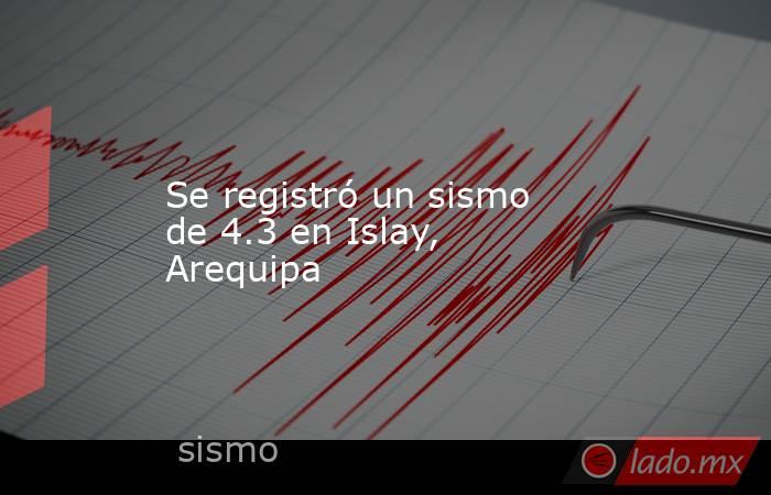 El Centro Sismológico Nacional (Censis) del Instituto Geofísico de Perú (IGP) registró un temblor de magnitud 4.3 este sábado 20 de diciembre con epicentro en la ciudad de Mollendo, en la provincia de Islay del departamento de Arequipa.