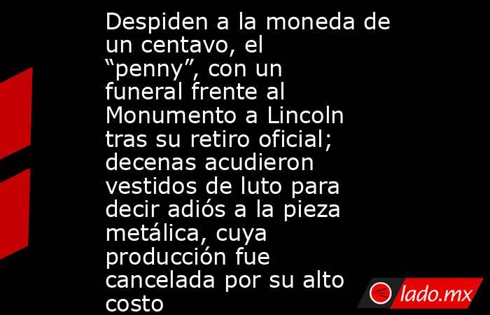 El centavo estadounidense recibió un “funeral” simbólico este sábado frente al Lincoln Memorial, luego de que la United States Mint suspendió oficialmente su producción el mes pasado, poniendo fin a una moneda que circuló por generaciones.