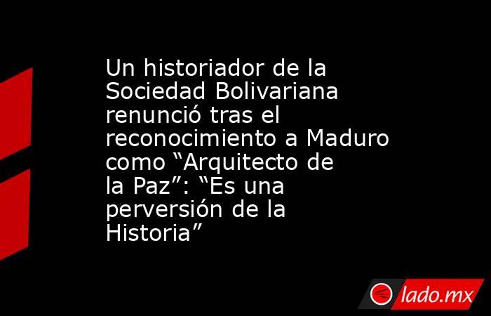 El premio Arquitecto de la Paz, es la causa por la que el reconocido historiador, Francisco Perdomo Terrero, renunciara inmediatamente y de forma irrevocable a la Sociedad Bolivariana al calificar el galardón a Maduro como “una perversión consciente de la Historia”.