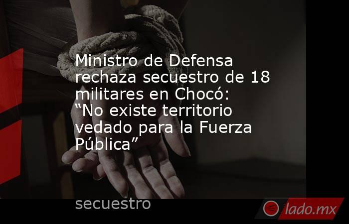 El ministro de Defensa, Pedro Arnulfo Sánchez, rechazó de manera categórica el secuestro de 18 militares del Ejército Nacional ocurrido en zona rural del municipio de El Carmen de Atrato, en el departamento del Chocó, y fue enfático al señalar que “no existe territorio vedado para la Fuerza Pública”, en referencia a la facultad constitucional que tienen las autoridades para actuar en cualquier punto del territorio nacional.