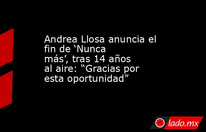 “Me están enviando mensajes y preguntando si es verdad que ‘Nunca más’ hoy llegó a su fin y sí, es verdad. No es final de temporada, hoy terminó el programa. Mi equipo y yo estamos satisfechos y agradecidos con estos 14 años al aire. Muchas gracias por la confianza”, compartió en sus historias de Instagram.