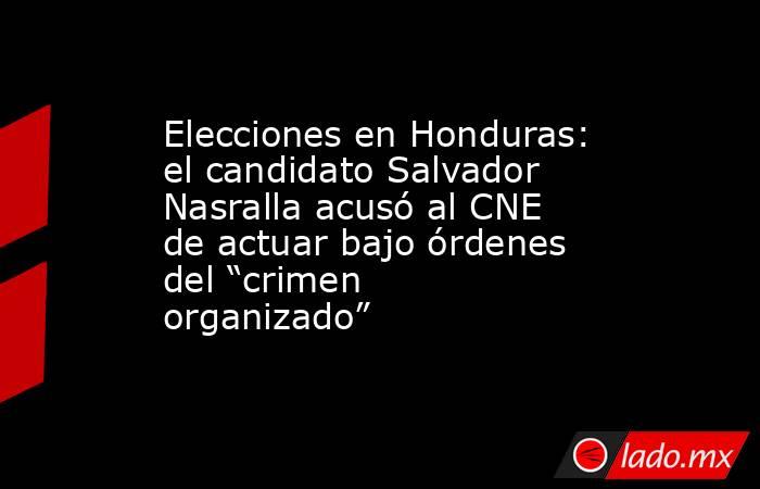 El candidato del Partido Liberal de Honduras, Salvador Nasralla, acusó el lunes a los miembros del Consejo Nacional Electoral (CNE) de actuar bajo órdenes del “crimen organizado” y señaló al ex presidente Juan Orlando Hernández como responsable de fraguar un fraude en las elecciones generales del 30 de noviembre, durante una protesta frente a la sede del organismo electoral en la capital hondureña.