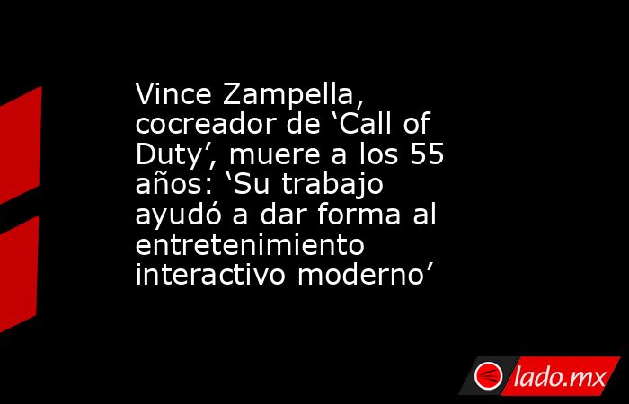 Muere Vince Zampella, creador del videojuego más vendido “Call of Duty”. Tenía 55 años.