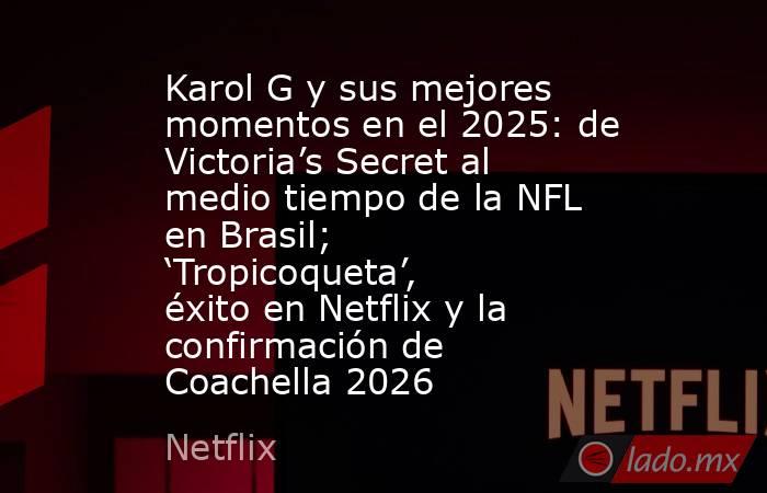 También en octubre, Karol G debutó como “ángel” en el icónico desfile de Victoria’s Secret, celebrado el 16 de octubre. Interpretó “Ivonny Bonita” y “Latina Foreva“, dos temas de Tropicoqueta, con un vestuario de encaje rojo y energía acorde al segmento.