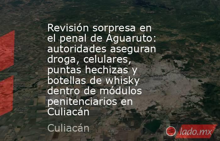 Este martes 23 de diciembre, en el Centro Penitenciario Aguaruto de Culiacán, Sinaloa, un operativo interinstitucional encabezado por la Secretaría de Seguridad Pública del Estado y el Grupo de Operaciones Especiales Sinaloa (GOES), en coordinación con el Ejército Mexicano, Guardia Nacional, Secretaría de Marina, Fiscalía General de la República, Secretaría de Seguridad y Protección Ciudadana y la Fiscalía General del Estado, permitió el aseguramiento de droga y objetos prohibidos durante la revisión de dos módulos.