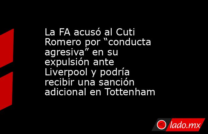La Federación Inglesa de Fútbol (FA) formalizó una acusación contra Cristian “Cuti” Romero por “conducta agresiva” y retraso en la salida del campo tras su expulsión en el encuentro entre Tottenham y Liverpool el sábado pasado. Esta situación abre la posibilidad de que el defensor argentino reciba una sanción adicional a la suspensión automática de un partido, en un contexto donde el club londinense atraviesa una de sus rachas más adversas de la temporada y se encuentra en la decimocuarta posición de la Premier League, con 22 puntos.
