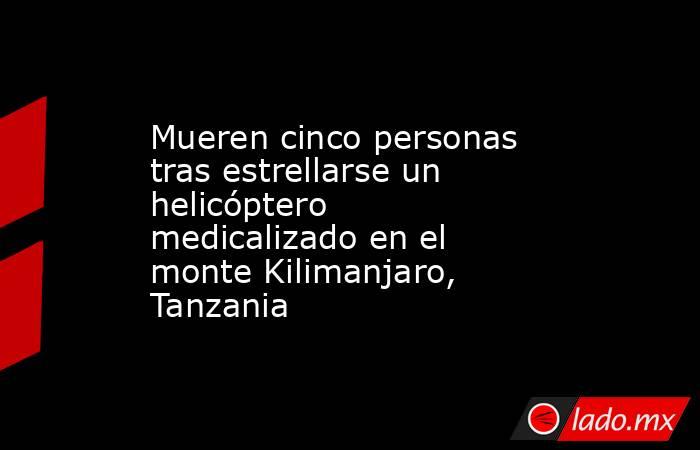 Al menos cinco personas han muerto a causa del siniestro de un helicóptero medicalizado en el monte Kilimanjaro, según ha confirmado la Autoridad de Aviación Civil de Tanzania, que ha apuntado que el suceso tuvo lugar el miércoles, sin que por ahora haya detalles sobre las causas del accidente.