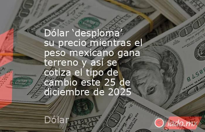 MÉXICO.- El dólar arranca este 25 de diciembre con un tipo de cambio interbancario de 17.89 pesos mexicanos por billete verde, mostrando una leve caída del 0.07 por ciento, según datos de Bloomberg.