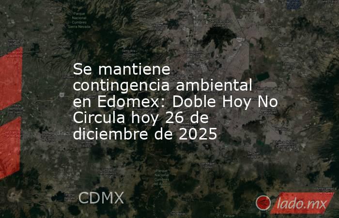 La Fase I de Contingencia Ambiental Atmosférica sigue activa este 26 de diciembre de 2025 en el Estado de México, lo que activó el Doble Hoy No Circula en varias zonas del Valle de Toluca y Santiago Tianguistenco.