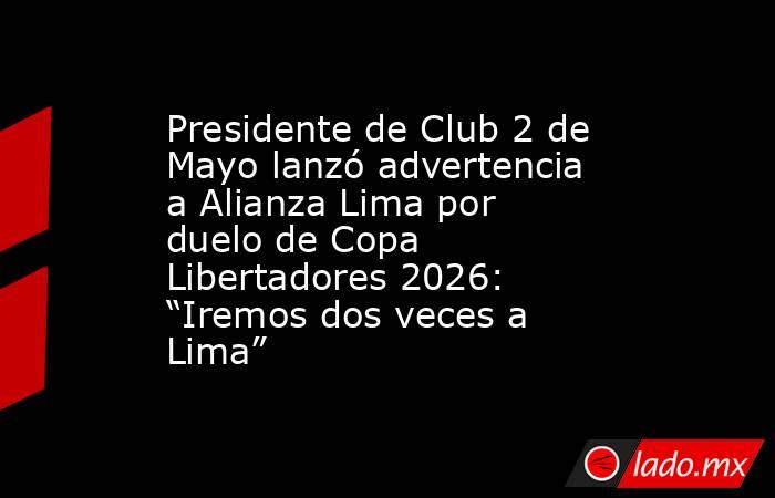 “Parece que vamos a viajar dos veces a Lima”, declaró el mandamás en ABC. Esta frase hace referencia a la posibilidad de que, si 2 de Mayo elimina a Alianza, el siguiente rival en la llave serán los rimenses, lo que implicaría una segunda visita a la capital peruana en esta etapa de la competencia internacional.
