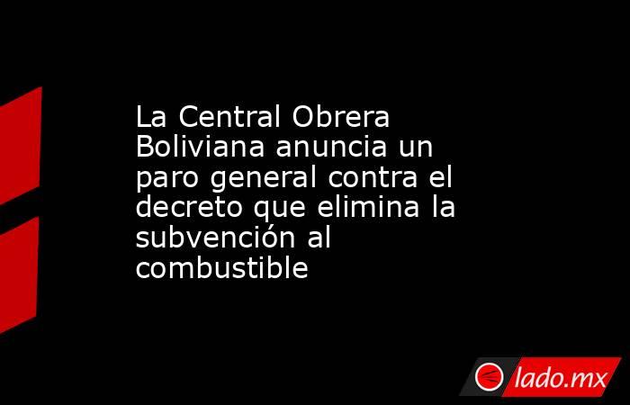 Un encuentro nacional de la Central Obrera Boliviana (COB) este 25 de diciembre determinó realizar un paro de actividades indefinido en demanda de la abrogación del Decreto Supremo 5503, que, entre otros aspectos, dispuso la eliminación de la subvención a los combustibles y el incremento de su precio en el mercado interno.